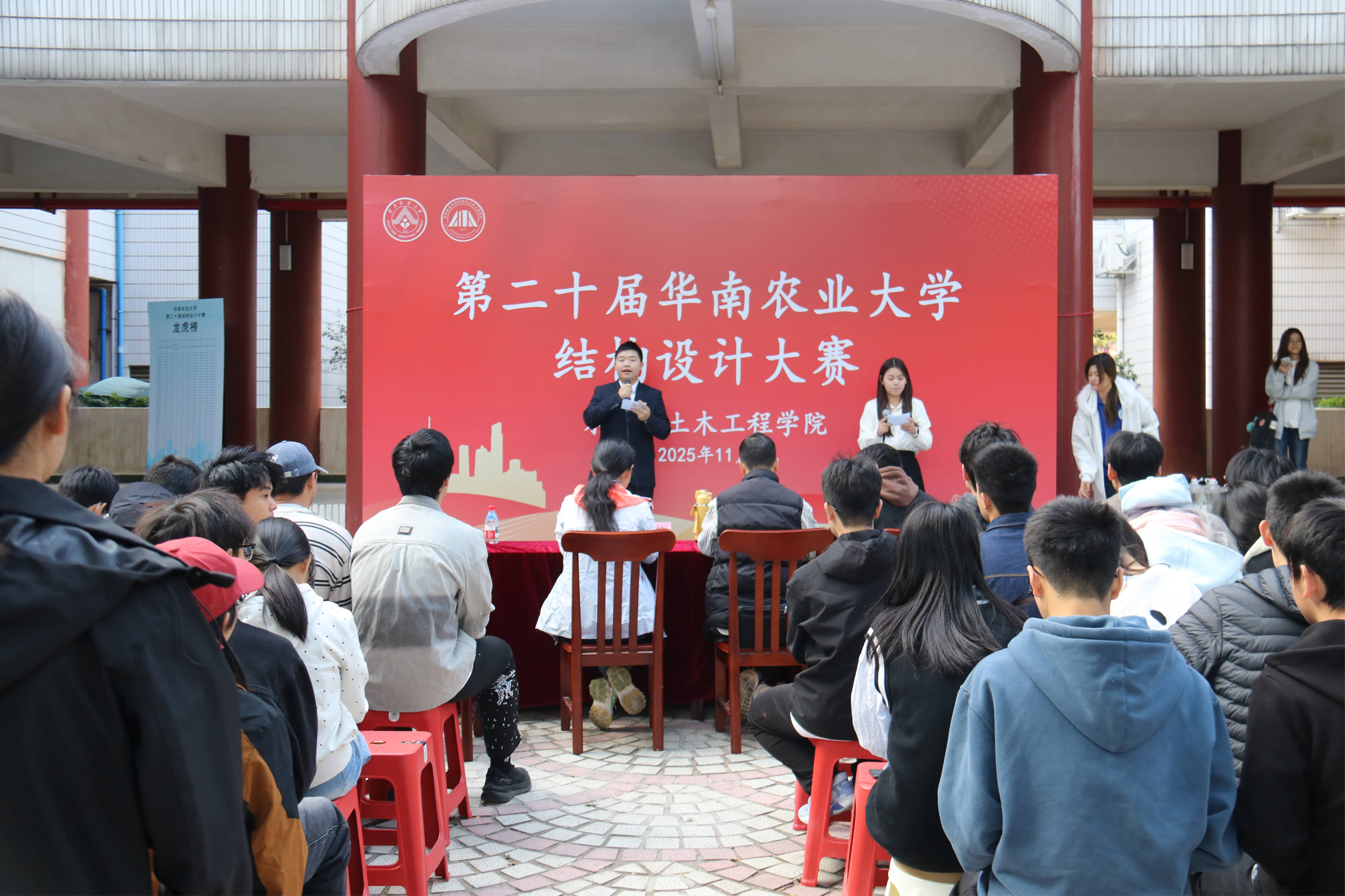 为培养学生的创新精神、实践能力与团队协作意识,全面提升人才培养质量,11月23日上午,华南农业大学第二十届结构设计大赛在院楼一楼大厅举行。